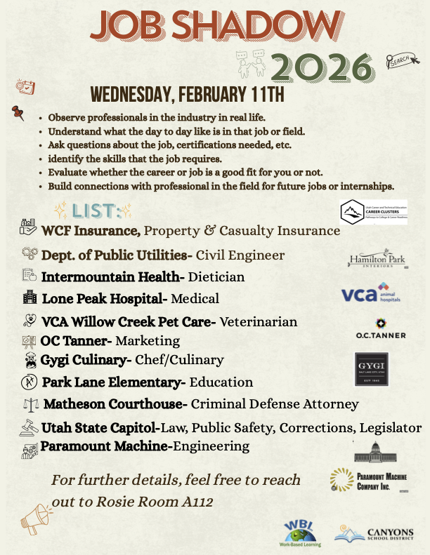 From Job Shadows to Industry Tours, WBL is a great place to explore potential careers. Students love to see first hand what various careers have to offer as it provides unique knowledge. Possible topics can include: classes that were taken, certifications that are required, day to day tasks, likes verses dislikes, and if that math class their freshman year really mattered! Industries are vetted beforehand and always obey the two deep protocol.